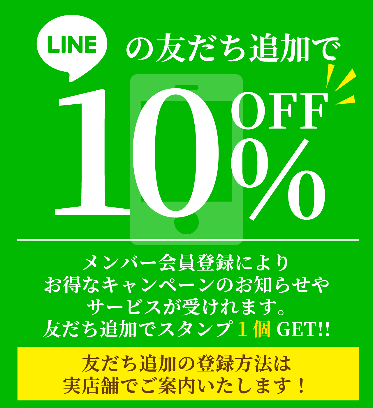 次回からご利用頂く際には、ご来店頂いたときに提示をお願い致します。